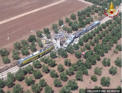 영국 텔레그래프 등 주요 매체는 12일 오전 11시30분쯤 이탈리아 남부의 풀리아주에서 마주오던 열차 두 대가 정면 충돌해 27명이 숨지고 수십명이 다쳤다고 보도했다.