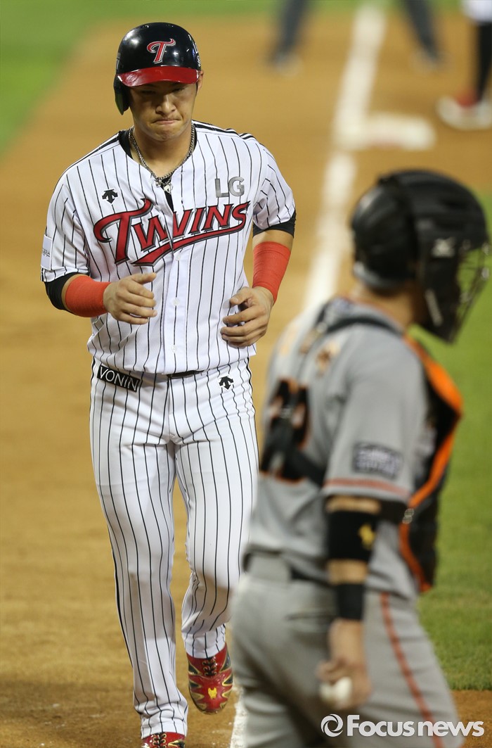| △ 밀어내기 득점하는 LG 오지환 |