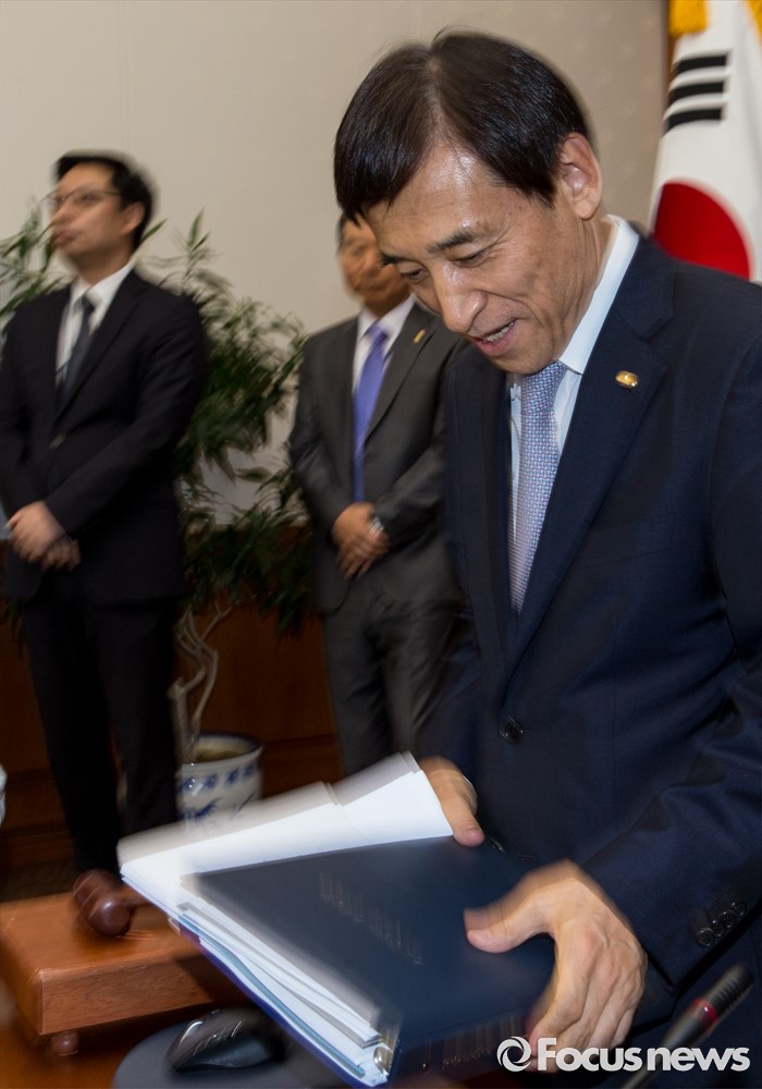 (서울=포커스뉴스) 14일 오전 서울 중구 한국은행에서 열린 제14차 금융통화위원회의에 이주열 한국은행 총재가 참석하고 있다.