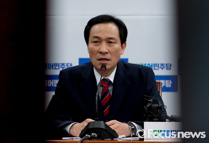 (서울=포커스뉴스) 14일 오전 서울 여의도 국회에서 열린 더불어민주당 정책조정회의에 참석한 우상호 원내대표가 모두발언을 하고 있다.