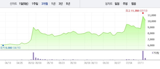 드래곤플라이는 지난 5월 VR 버전의 '스페셜포스'를 내놓았다. 하반기에는 정식 출시를 준비 중이다.주가흐름<사진출처=네이버 캡쳐>