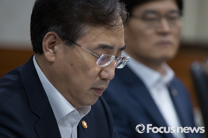(서울=포커스뉴스) 이석준 국무조정실장이 14일 오전 서울 종로구 정부서울청사에서 열린 대구공항 통합이전 TF 첫 회의 시작을 기다리며 자료를 살펴보고 있다.
