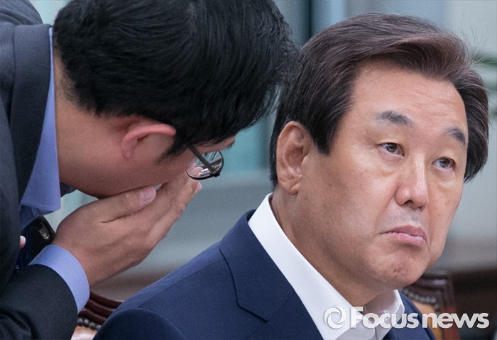 (서울=포커스뉴스) 14일 오전 서울 여의도 국회에서 열린 외교통일위원회 전체회의에 참석한 김무성(오른쪽) 새누리당 전 대표가 보좌진으로부터 보고를 받고 있다.
