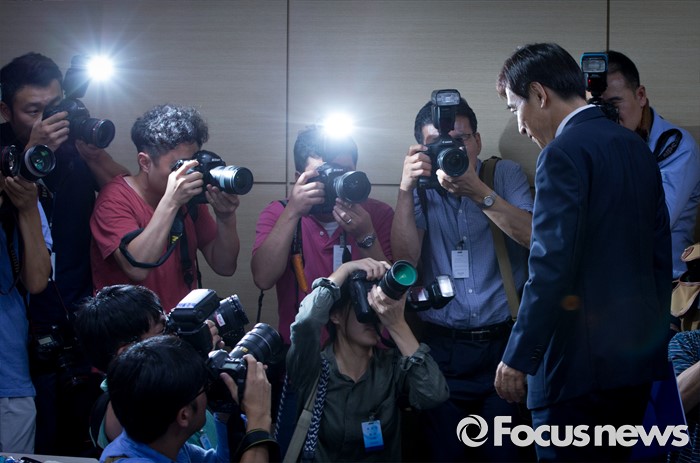 | △ 회견장 빠져나가는 이주열 |