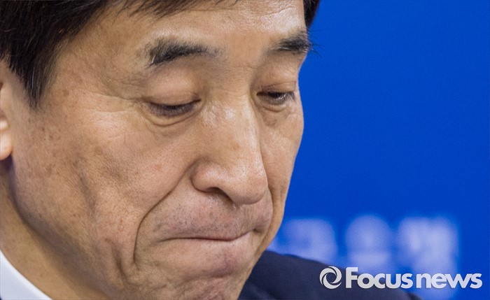 (서울=포커스뉴스) 이주열 한국은행 총재가 14일 오후 서울 중구 한국은행에서 최근의 물가안정목표제 운영상황에 대해 설명 도중 생각에 잠겨 있다.