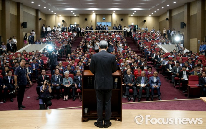 (서울=포커스뉴스) 14일 오후 서울 여의도 국회 의원회관에서 열린 새누리당 전국위원회에 참석한 김희옥 혁신비대위원장이 인사말을 위해 단상으로 향하고 있다.