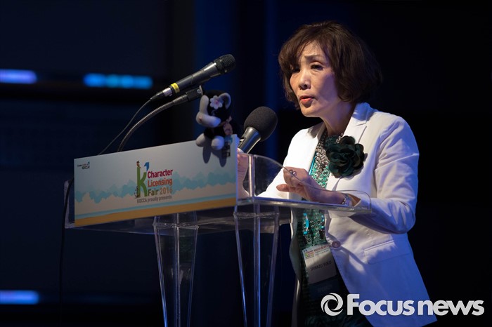 (서울=포커스뉴스) 14일 오후 서울 강남구 코엑스에서 열린 캐릭터라이선싱페어 2016 에서 헬로키티 창작자 시즈미 유꼬가 '캐릭터 창조 비법' 이라는 주제로 특강을 하고 있다.
