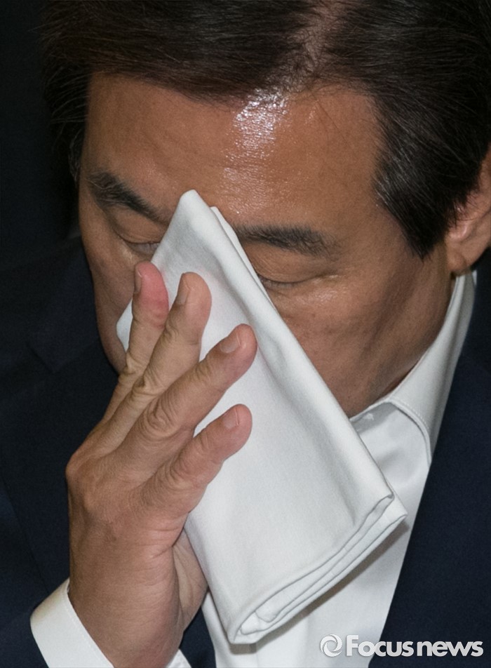 | △ 얼굴 닦는 김무성 |