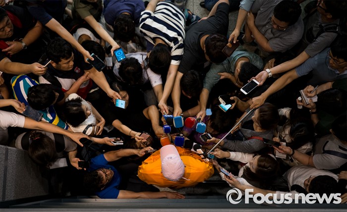 (인천공항=포커스뉴스) 리우 올림픽 출전이 확정된 '마린보이' 박태환이 호주 전지훈련을 마치고 14일 오후 인천국제공항을 통해 입국해 기자회견을 하고 있다.