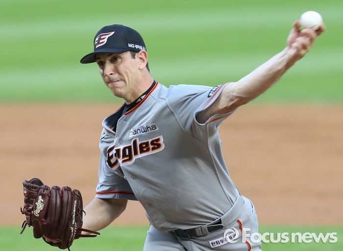 (서울=포커스뉴스) 14일 서울 잠실구장에서 열린 2016 프로야구 한화-LG 경기에서 1회말 한화 선발투수 서캠프가 투구하고 있다.