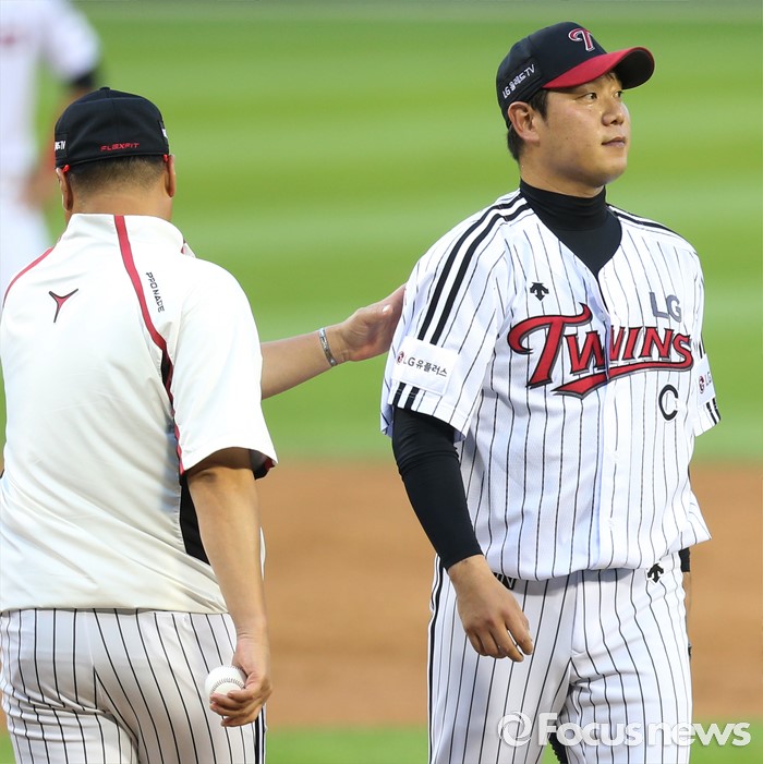 | △ 마운드 내려가는 LG 선발 류제국 |