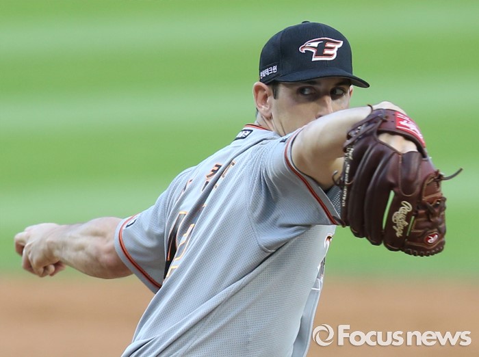 (서울=포커스뉴스) 14일 서울 잠실구장에서 열린 2016 프로야구 한화-LG 경기에서 1회말 한화 선발투수 서캠프가 투구하고 있다.