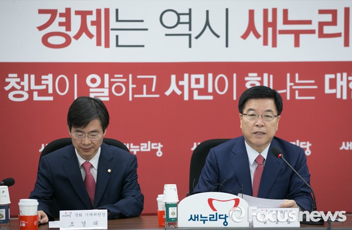 (서울=포커스뉴스) 15일 오전 서울 여의도 국회에서 열린 2016년도 추가경정 예산 당정협의에 참석한 김광림(오른쪽) 새누리당 정책위의장이 모두발언을 하고 있다,