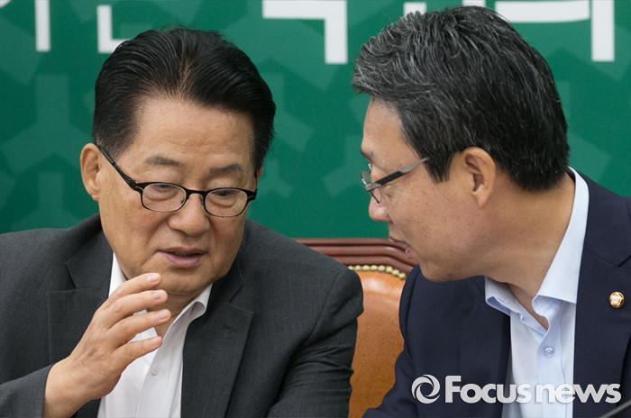 새누리당은 전날(14일) 홍영표 환노위원장이 고용노동부 예비비 지출·수입의 건을 여야 간사간 합의없이 강행처리한 것에 대해 이날 의사일정 전면 중단을 선언했다.8일 오전 서울 여의도 국회에서 열린 국민의당 원내대책회의에 참석한 박지원(왼쪽) 비대위원장과 김성식 정책위의장이 대화하고 있다. 2016.07.08 박동욱 기자