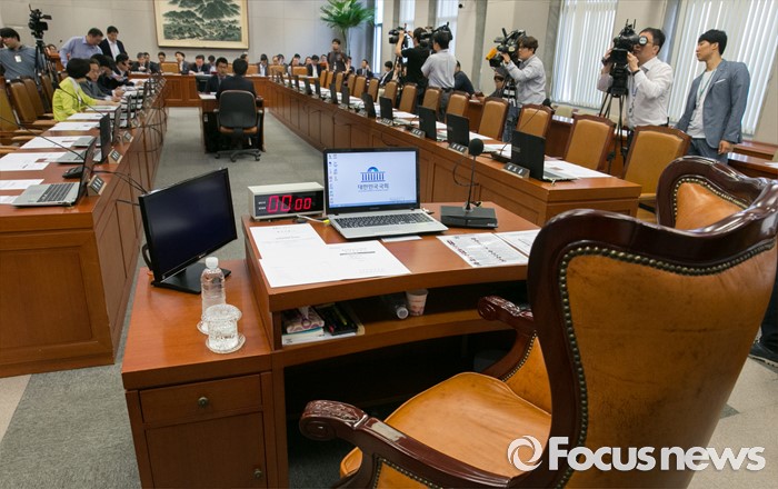 (서울=포커스뉴스) 15일 오전 서울 여의도 국회에서 예정된 운영위원회 전체회의에 새누리당 의원들이 불참해 빈 자리가 보이고 있다. 이날 새누리당은 더불어민주당 소속 홍영표 국회 환경노동위원장이 야당 단독으로 예비비 지출안 등을 처리한 것과 관련해 홍 위원장의 사퇴를 요구하며 모든 상임위 보이콧을 선언했다.