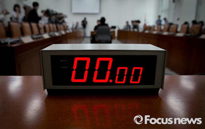 (서울=포커스뉴스) 15일 오전 서울 여의도 국회에서 예정된 가습기살균제 사고 진상규명과 피해구제 및 재발방지 대책 마련을 위한 국정조사특별위원회 전체회의에 참석한 야당 의원들이 새누리당 의원들을 기다리며 회의 진행을 하고 있다. 이날 새누리당은 더불어민주당 소속 홍영표 국회 환경노동위원장이 야당 단독으로 예비비 지출안 등을 처리한 것과 관련해 홍 위원장의 사퇴를 요구하며 모든 상임위 보이콧을 선언했다.