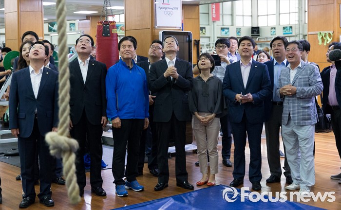 (서울=포커스뉴스) 김희옥 새누리당 혁신비상대책위원장이 15일 오전 서울 노원구 태릉선수촌을 방문해 리우올림픽에 출전하는 선수들을 격려하고 있다.