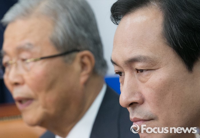 | △ 김종인 발언 듣는 우상호 |