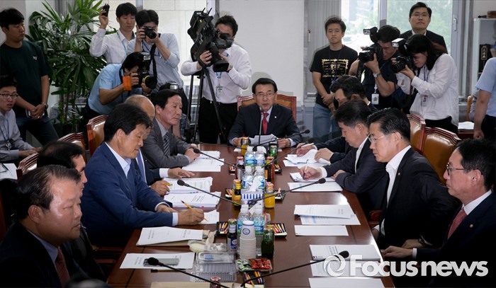 (서울=포커스뉴스) 18일 오전 서울 여의도 국회에서 열린 외교통일위원장 및 3당 간사단과 통일부, 개성공단 기업협의회 임원진 긴급간담회에 참석한 심재권 외통위원장이 모두발언을 하고 있다.