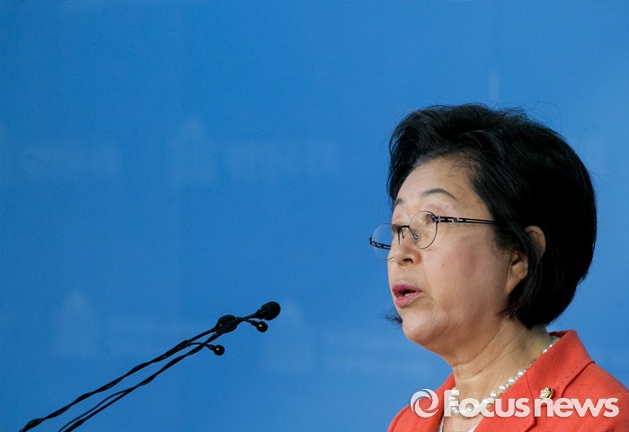 (서울=포커스뉴스) 이은재 새누리당 의원이 18일 오전 서울 여의도 국회 정론관에서 8·9 전당대회 최고위원 출마 기자회견을 하고 있다.