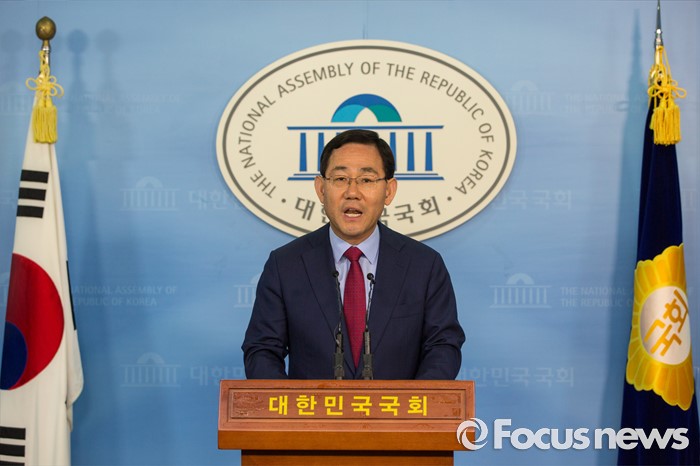 (서울=포커스뉴스) 주호영 새누리당 의원이 18일 오전 서울 여의도 국회에서 오는 8월9일 열릴 전당대회 당대표 출마 선언을 하고 있다.