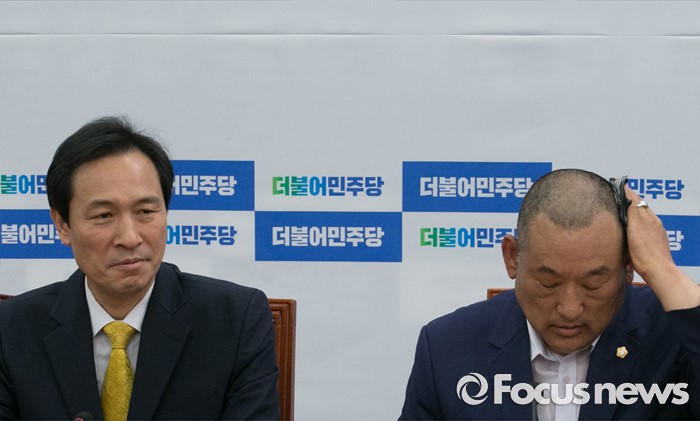 (서울=포커스뉴스) 우상호 더불어민주당 원내대표가 18일 오전 서울 여의도 국회에서 열린 사드반대 전국대책회의 등 관련단체와의 면담에 참석해 자리하고 있다. 오른쪽은 노광희 성주군의회 의원.