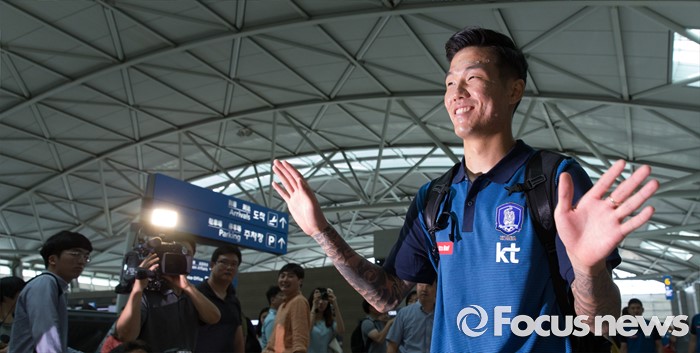 (인천공항=포커스뉴스) 2016년 리우데자네이루 올림픽 메달에 도전하는 올림픽 축구 국가대표팀 석현준이 18일 오후 인천국제공항에서 브라질 상파울루로 출국하기 위해 이동하며 취재진을 향해 인사하고 있다.