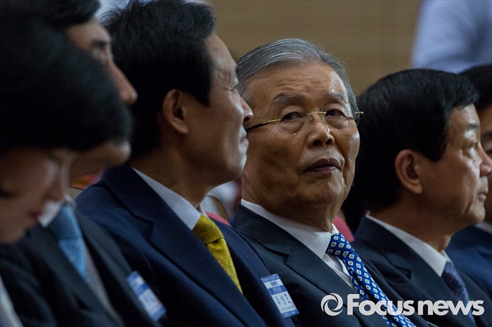 (서울=포커스뉴스) 김종인(왼쪽 세 번째) 더불어민주당 비상대책위 대표와 우상호(왼쪽 두 번째) 원내대표가 18일 오후 서울 여의도 국회의원회관에서 열린 '더불어민주당 중앙위원회의'에 참석해 대화 하고 있다.