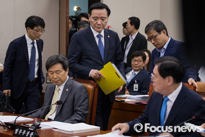 (서울=포커스뉴스) 김현웅 법무부 장관이 18일 오후 서울 여의도 국회에서 열린 법제사법위원회 전체회의에 출석하고 있다.