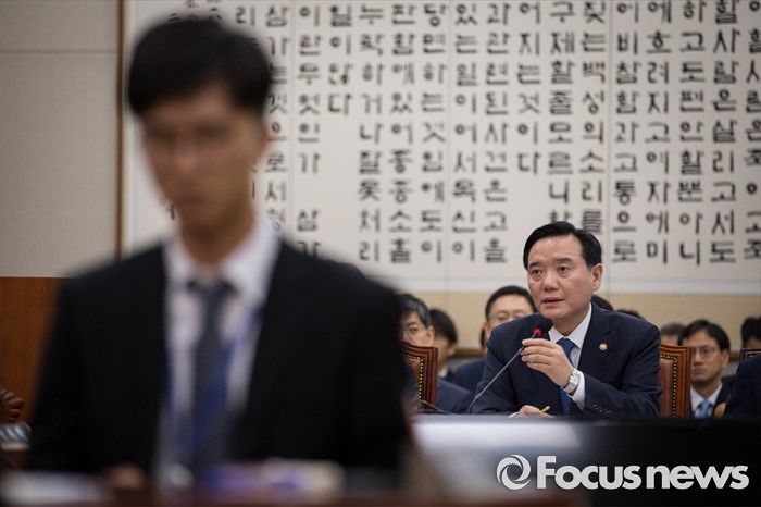 (서울=포커스뉴스) 김현웅 법무부 장관이 18일 오후 서울 여의도 국회에서 열린 법제사법위원회 전체회의에 출석하고 있다. 김 장관은 진경준 검사장 구속 관련 법무부의 초기 대응이 부실했다는 의원들의 지적에 대해 "저희는 법과 절차를 따랐지만 국민들이 보시기에 부족했던 것으로 보인다"며 사과를 했다.