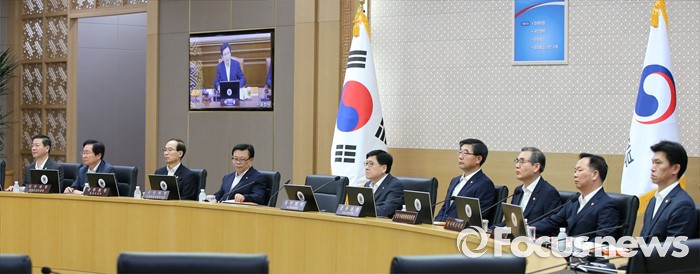 (세종=포커스뉴스) 19일 오전 세종시 정부세종청사 국무회의장에서 서울-세종 간 영상회의로 열린 국무회의에 참석한 국무위원들이 황교안 국무총리의 발언을 경청하고 있다.