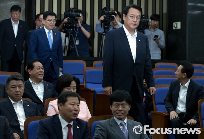 (서울=포커스뉴스) 19일 오전 서울 여의도 국회에서 열린 새누리당 의원총회에 정진석 원내대표가 참석하고 있다.