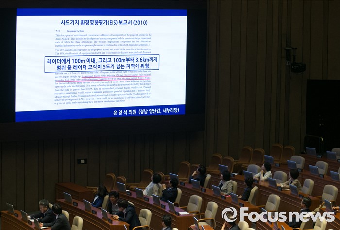 (서울=포커스뉴스) 19일 오전 서울 여의도 국회에서 열린 344회 국회(임시회) 1차 본회의, 사드(THAAD·고고도미사일방어체계) 배치에 대한 긴급현안질문에 참석한 윤영석 새누리당 의원이 사드기지 환경영향평가 보고서를 보여주며 질문하고 있다.