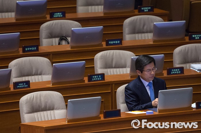 (서울=포커스뉴스) 황교안 국무총리가 19일 오전 서울 여의도 국회에서 열린 제344회 국회(임시회) 1차 본회의, 사드(THAAD, 고고도미사일방어체계) 배치에 대한 긴급현안질문에 참석해 질의응답 준비 하고 있다.