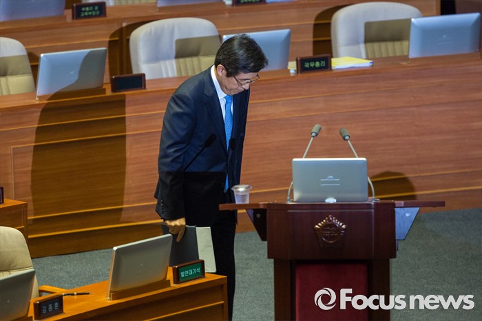 (서울=포커스뉴스) 황교안 국무총리가 19일 오전 서울 여의도 국회에서 열린 제344회 국회(임시회) 1차 본회의, 사드(THAAD, 고고도미사일방어체계) 배치에 대한 긴급현안질문에 참석해 의원 질의에 답하기 전 인사 하고 있다.