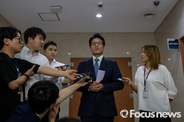 (서울=포커스뉴스) 정병국 새누리당 의원이 19일 오전 서울 여의도 국회에서 윤상현 의원의 공천개입 의혹 관련 입장발표를 마친 뒤 취재진 질문에 답하고 있다.