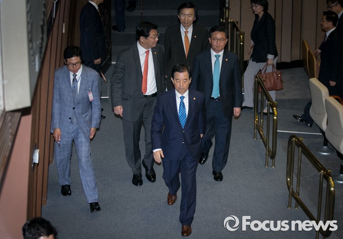 (서울=포커스뉴스) 19일 오전 서울 여의도 국회에서 344회 국회(임시회) 1차 본회의, 사드(THAAD·고고도미사일방어체계) 배치에 대한 긴급현안질문을 마친 뒤 한민구 국방부 장관, 홍용표 통일부 장관, 윤병세 외교부 장관, 주형환 산업통상자원부 장관이 퇴장하고 있다.