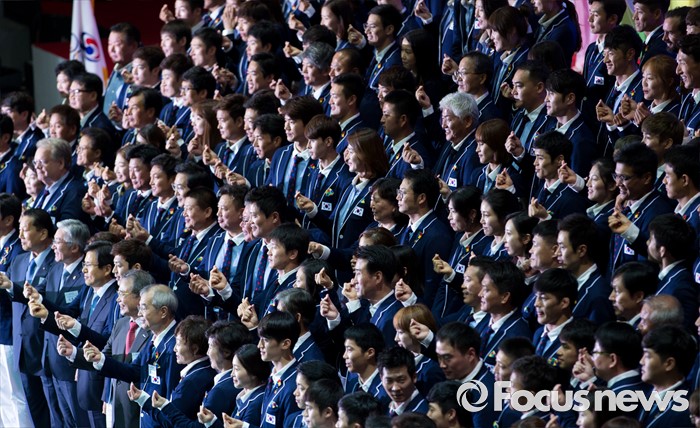 (서울=포커스뉴스) 19일 오후 서울 송파구 올림픽공원 올림픽홀에서 열린 2016 리우올림픽 대한민국 선수단 결단식에서 선수단이 기념촬영을 하고 있다.