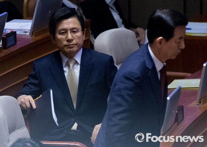 (서울=포커스뉴스) 20일 오전 서울 여의도 국회에서 열린 344회 국회(임시회) 2차 본회의, 사드(THAAD·고고도미사일방어체계) 배치에 대한 긴급현안질문에 참석한 황교안(왼쪽) 국무총리, 한민구 국방부 장관이 각각 자리로 향하고 있다.
