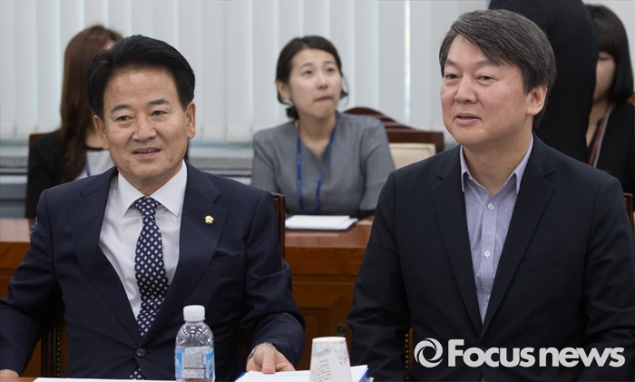 (서울=포커스뉴스) 20일 오전 서울 여의도 국회에서 열린 미래일자리 특별위원회 전체회의에 참석한 정동영(왼쪽) 위원장과 안철수 국민의당 전 대표가 자리하고 있다.