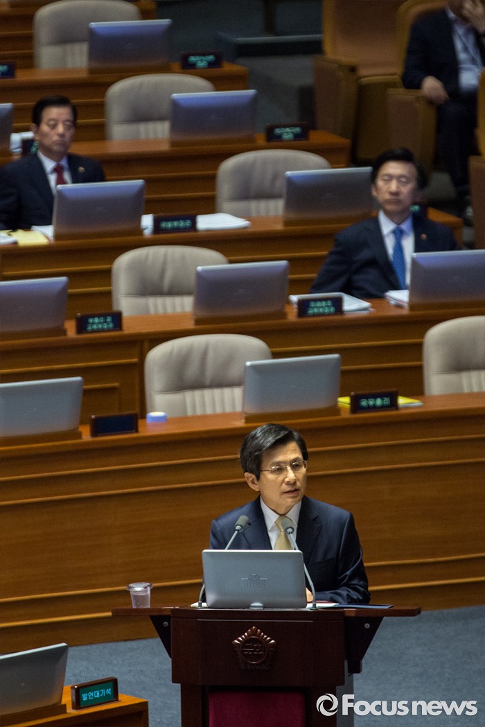 (서울=포커스뉴스) 황교안 국무총리가 20일 오전 서울 여의도 국회에서 열린 344회 국회(임시회) 2차 본회의, 사드(THAAD, 고고도미사일방어체계) 배치에 대한 긴급현안질문에 참석해 의원질의에 답하고 있다.