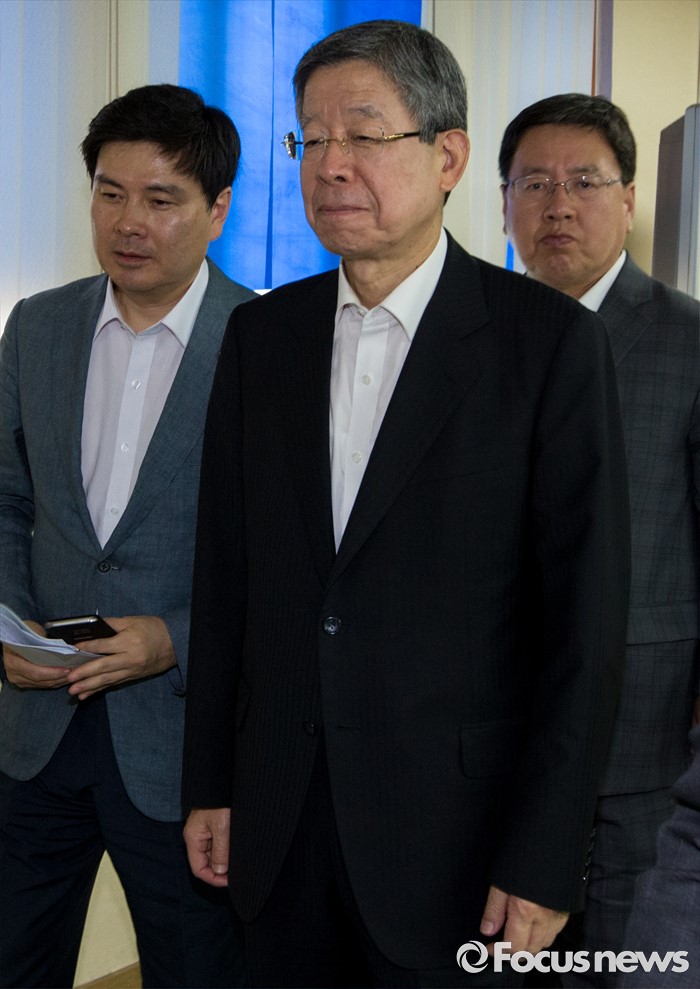 (서울=포커스뉴스) 20일 오전 서울 중구 남대문지역상담센터에서 김희옥(가운데) 새누리당 혁신비대위원장이 지역사회복지활동가들과 대화 후 쪽방촌으로 발걸음을 옮기고 있다. 김 위원장은 이날 간담회를 마친 후 남대문 쪽방촌을 방문, 여름철 무더위 대비와 주민보호대책 마련을 위한 민생행보를 이어갔다.