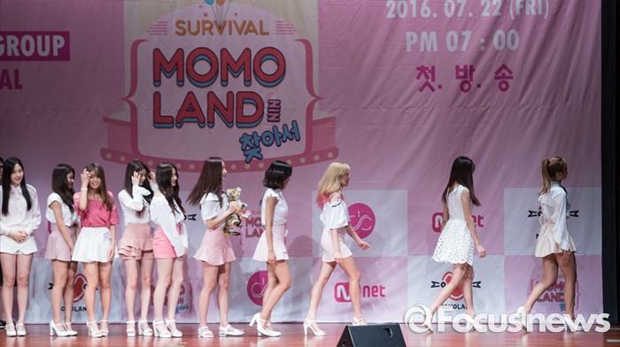 (서울=포커스뉴스) 20일 오후 서울 마포구 누리꿈스퀘어에서 열린 Mnet '서바이벌 모모랜드를 찾아서' 제작발표회에 참석한 모모랜드 연습생들이 포토타임을 마친 후 퇴장하고 있다.