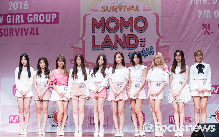 (서울=포커스뉴스) 20일 오후 서울 마포구 누리꿈스퀘어에서 열린 Mnet '서바이벌 모모랜드를 찾아서' 제작발표회에 참석한 연습생들이 포토타임을 갖고 있다.
