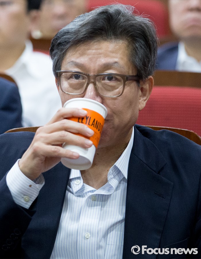 | △ 음료 마시는 박형준 전 국회 사무총장 |