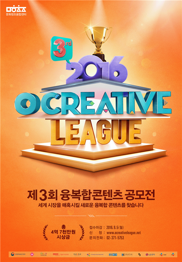 제3회 공모전은 '오 크리에이티브 리그'로 공모명을 정하고 차세대 애니메이션과 가상현실(VR), 홀로그램 공연, 웹툰과 웹드라마, 융․복합 전시 체험, 테마파크, 전통 콘텐츠 등 공모 분야를 기존의 세계적 융․복합콘텐츠 분야와 차세대 게임분야에서 14개로 확대해 진행한다.
