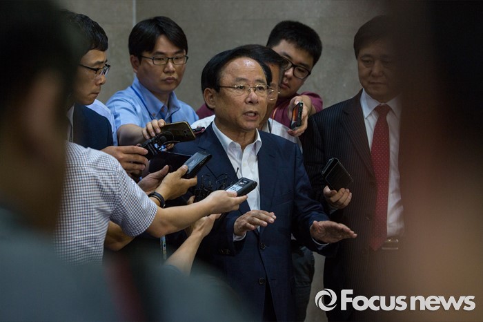 (서울=포커스뉴스) 이주영 새누리당 의원이 21일 오전 서울 여의도 국회에서 8.9 전당대회 당대표 출마 선언 기자회견을 마친 뒤 취재진 질문에 답하고 있다.