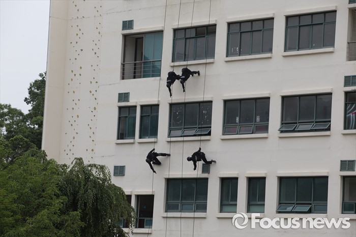 (서울=포커스뉴스) 21일 오전 서울 서초구 경찰특공대에서 경찰 특공대원들이 대테러 훈련을 하고 있다.