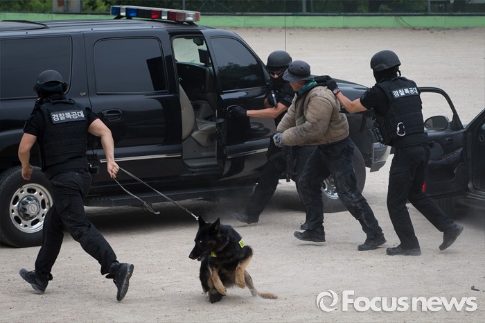 (서울=포커스뉴스) 21일 오전 서울 서초구 경찰특공대에서 경찰 특공대원들이 대테러 훈련을 하고 있다.
