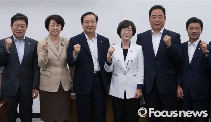 (서울=포커스뉴스) 21일 오전 서울 여의도 국회에서 민생경제 특별위원회 전체회의를 마친 김상희 위원장과 의원들이 취재진을 향해 포즈를 취하고 있다.